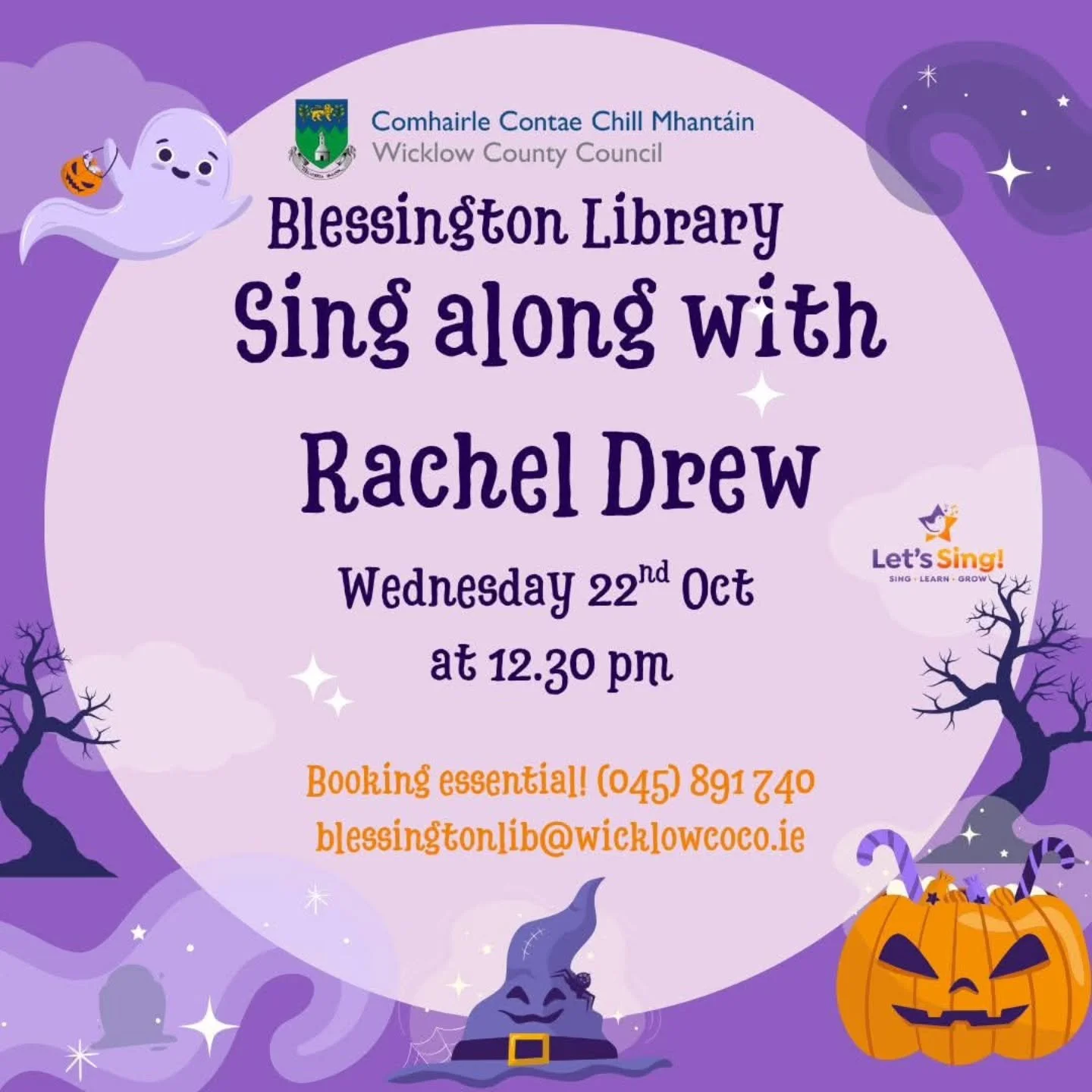 Wednesday 22nd October 2025 - 12.30pm - Halloween sing-along class (Booking essential, contact Blessington library (045) 891 740, blessingonlib@wicklowcoco.ie)