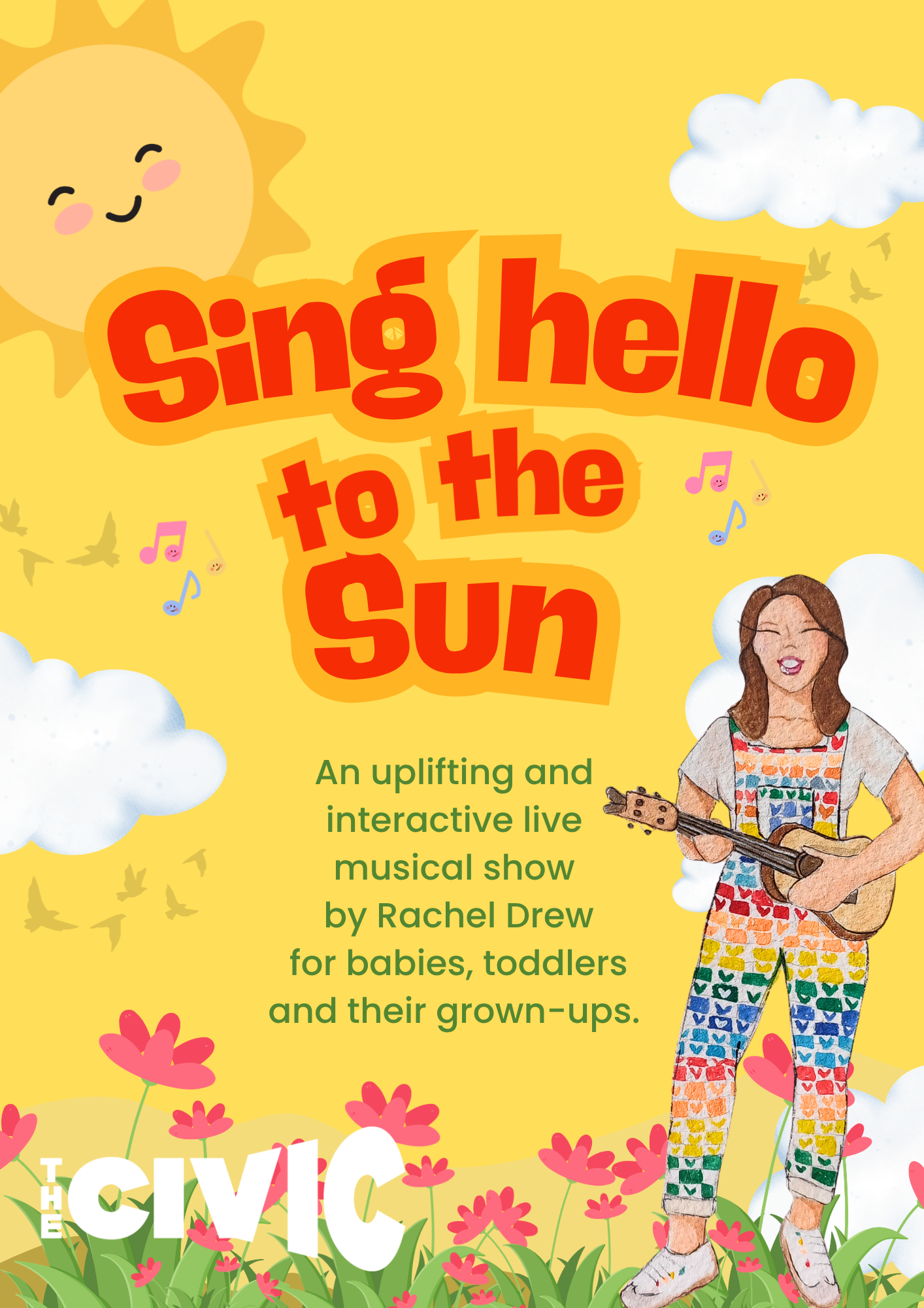 Sing Hello to the Sun is a gentle, magical live performance by Rachel Drew that follows the journey of the sun as it rises, shines and slowly sets at the end of the day. Through soothing original songs, simple melodies and playful musical moments, children are invited on a sensory journey from sunrise to sunset. Families sit together in a relaxed circle for this new babies and early years show. Rachel guides the audience through new songs with interactive movement, soft lights and sound exploration using props, and percussion instruments. Sing Hello to the Sun!